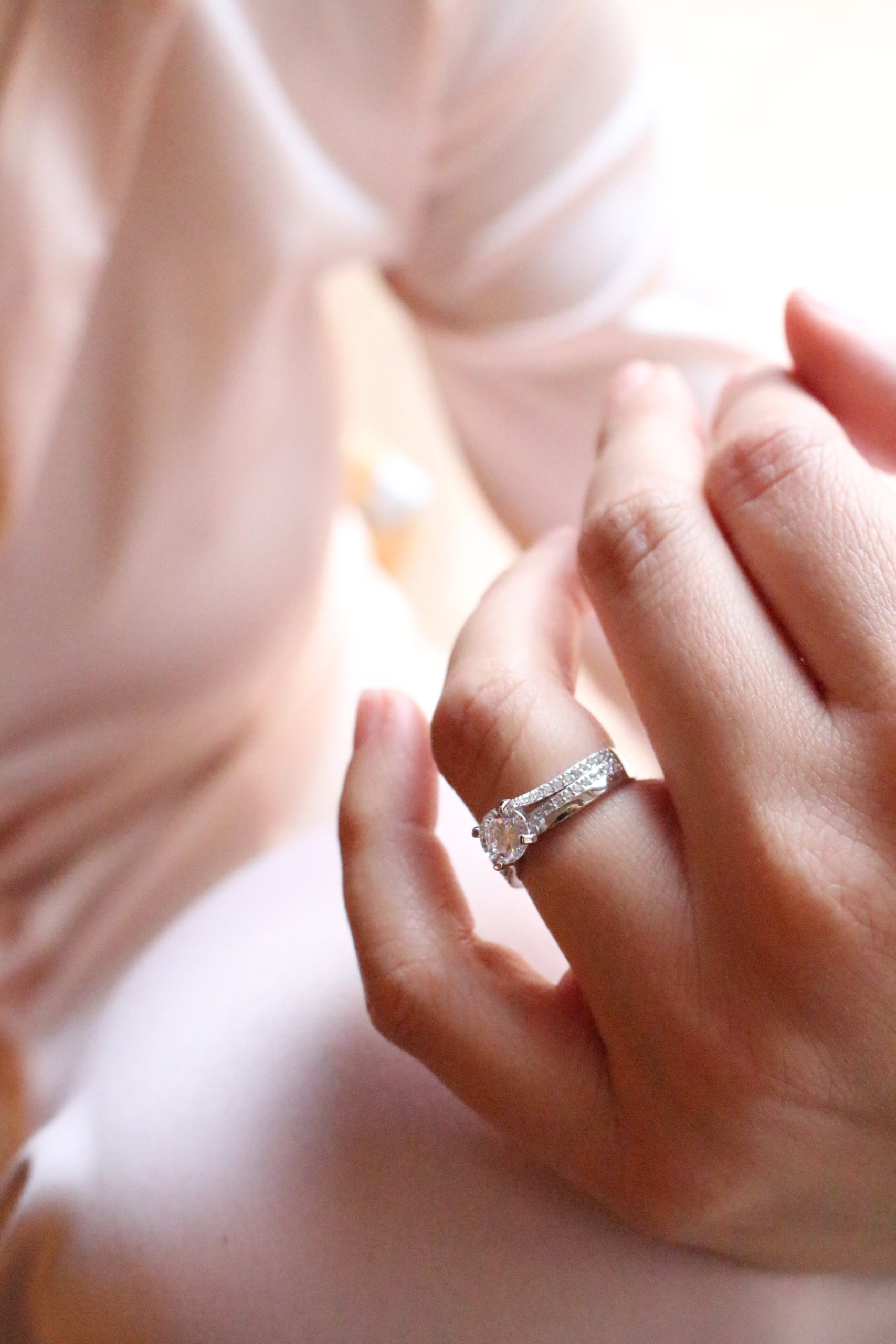 Ασημένιο ροδιωμένο μονόπετρο δαχτυλίδι με δύο σειρές από πέτρες ζιργκόν στα πλαϊνά.